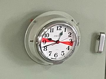 右の時計は第一沈黙時間(モールス信号を出すのをやめて、遭難信号が出ていないか?みんなで聞く時間)が赤く塗ってありました。