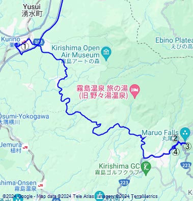 九州自動車道を薩摩吉田ICで降りてちょっと山道を走り、「寺山公園展望台」の駐車場から、少し(5分くらい)山道を徒歩で登ります。