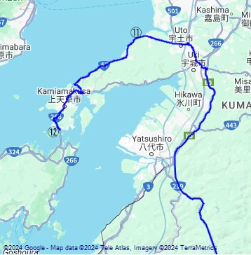 鬼池港から出発するのと同じ時間に口之津港から姉妹船が出発し、中間ですれ違います。
