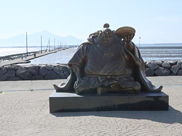 住吉海岸公園。アニメ「ワンピース」の巨大なジンベエ像があります