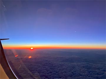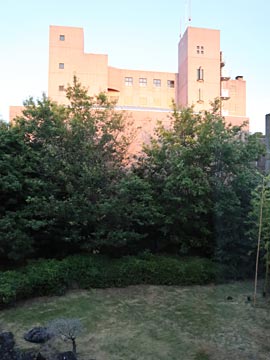 夕食前、西館7Fの大浴場入り口前の窓から見た沈む夕日。(ここの大浴場は脱衣所が7F、浴室は階段を下りた6Fにあり、浴室からもガラス越しに風景が見れます)