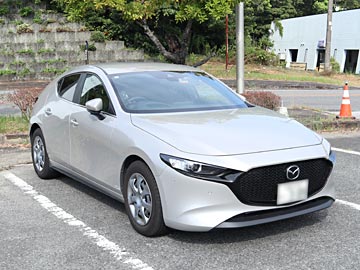 タイムズレンタカー福岡空港店で車を借りました。コンパクトで車種はお任せ(ノートなど)となっていましたが、今回は走行距離 19,761kmの「マツダ3」でした。