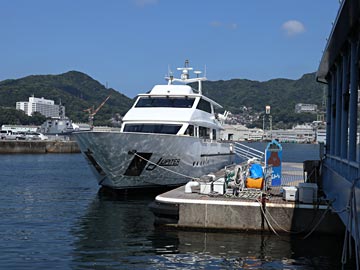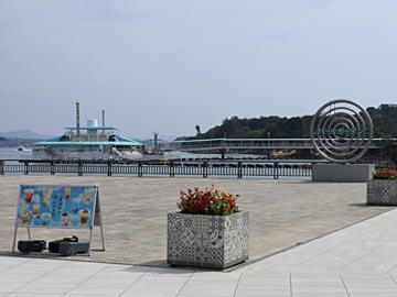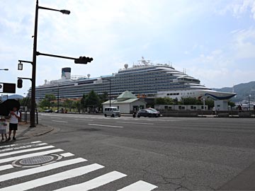 長崎の中心部に到着、市営松が枝町第二駐車場に車をとめました。すぐ近くの港に停泊しているのは、中国の大型クルーズ船「アドラ・メディタラニア」。天津を母港にショート・クルーズをしているようです。