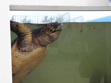 入ったところで、ウミガメにキャベツの餌やり¥200