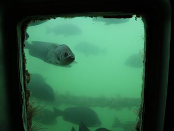 窓から海の魚たちがたくさん見えました。串本海中公園でも感じましたが、魚が寄ってくるようです。