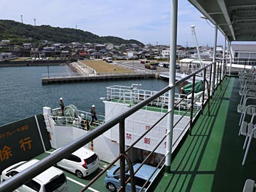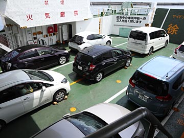 航海中、車両甲板は立入禁止。乗客は30人くらい?みなさん冷房の効いた船内にいるようでした。