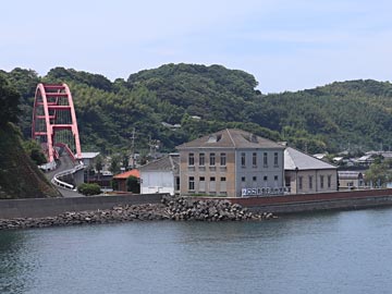 到着少し前、左側に「口之津歴史民俗資料館」が見えました。あの狭い橋は、以前通った覚えがあります