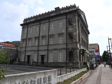 近くの「南山手地区町並み保存センター」でも「眼鏡橋とあじさい」のマンホールカードをもらいました。旧香港上海銀行のすぐ近くですが、急坂を登ります。