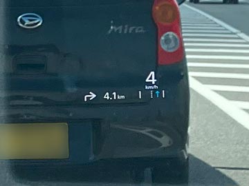 ACCの速度設定が60km/h、50m先ハウステンボス入口左折、の表示。ACC付きだったので、高速でも、地道でも、運転(速度の維持)は楽でした。