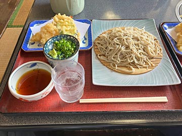 熊本の親戚の家でお墓参りのあと、近くのおそば屋さん(そば幸 清水店)で「今月の10割そば」¥1,300 のランチ。おいしかった。