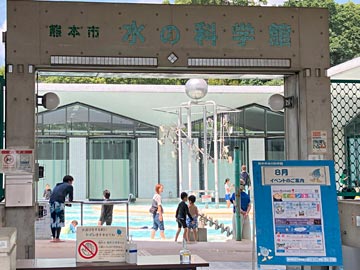 熊本市水の科学館でケロロ軍曹のマンホールカードをもらいました。建物に囲まれるように、水遊び場があって、この日は暑かったので、子供たちがたくさんいて人気でした。