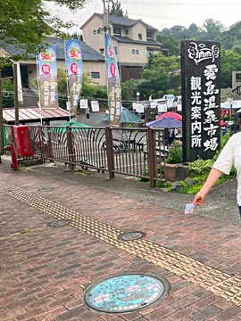 霧島温泉市場内 観光案内所でマンホールカードをもらいました。強い硫黄のにおいがしました。