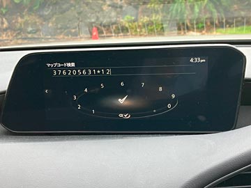 今回も主要な行先のマップコードを予め調べてきており、この車のカーナビもマップコードに対応していて助かりましたが、入力が面倒。タッチパネルではなく、センターコンソールの大型クルクルダイヤルで設定するので、時間がかかります。