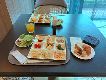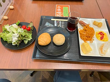 朝食は1Fのレストランでバイキング。おいしいと評判で、実際おいしかった。目の前で卵焼きを焼いてもらいました。