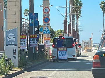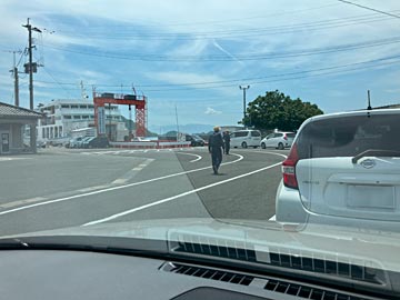 鬼池港に10:15くらいに到着。車列の最後尾に誘導されます。次の出港は10:30なので、急いで車検証を持って、乗船券を買いに行きます(マツダ3の全長は4.46m、運賃はドライバー1名付きで¥3,500、追加の大人1人¥540)。