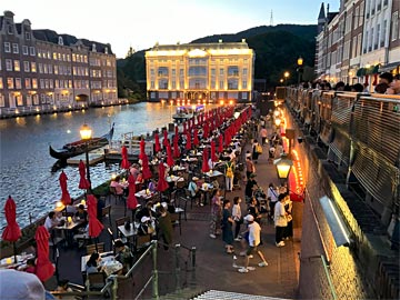 ロビーから外に出て、夜景を見ました。右側にさっきのクルーズ船が見えます。