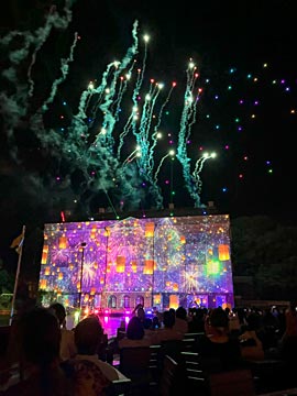 スペクタクルランタンナイトショー。願いを諦めてしまった街の少年”ニコ”が、様々な想いを持つ街の住人たちのそれぞれの願いに触れて、大切なことに気づく物語(リンク)。フィナーレは、ランタンが飛ぶイメージでドローンが飛びながら光り、花火も上がりました。