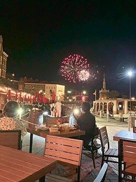 この日は、ランタンナイトショーのあと、すぐに ホテルデンハーグの前で「サマーナイト花火」も開催され、少し遠かったですが、しっかり見えました。
