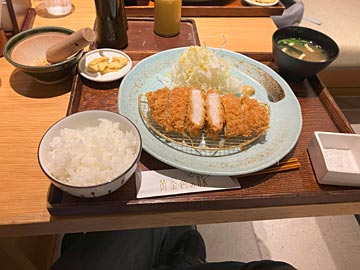 飛行機が遅れたので、福岡空港で早めの夕食。「黄金色の豚」で豚ロース120g