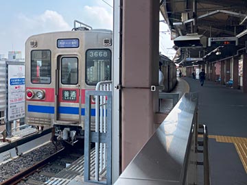 反対から通路の入り口を見るとこんな感じ。東成田までは京成線ですが、東成田から次の終点駅(芝山千代田)までは別の路線(芝山鉄道)となっており、「日本一短い鉄道」と自ら呼んでいます。
