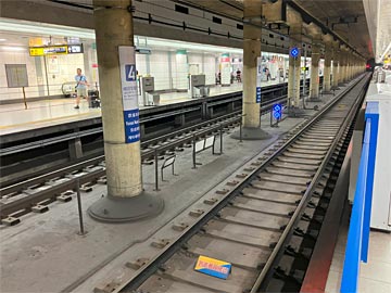 登りのエスカレーターは動いていますが、下りは中止してカバーがかけてありました。