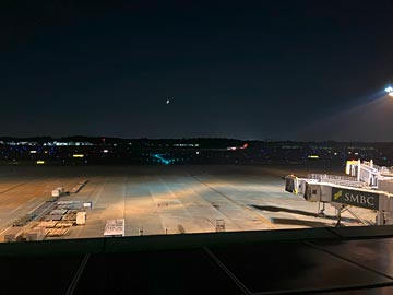 第一ターミナル5Fの展望デッキに出てみました。A滑走路に離着陸する飛行機が頻繁に見えました。フライトレーダーで見た感じ、この時間はアジア方面が多いようです。秋の虫が飛行機に負けず、大きな声で鳴いていました。