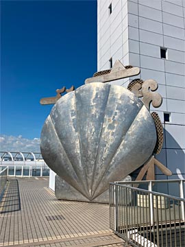 塔の中央にある彫刻は、田辺光彰氏の『遥かなるもの・横浜「貝」』