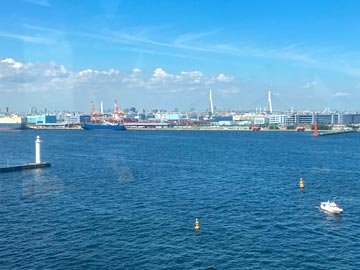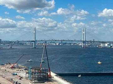 左側は房総半島、右側は三浦半島、この日は遠くまでよく見えました。近くはケーソンで仕切っており、埋め立て工事中だそう。