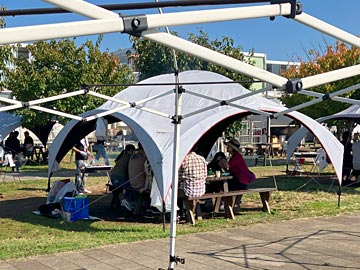 豊洲ぐるり公園はバーベキュー場になっていました。天気も良くて野外での食事は気持ち良さそう。