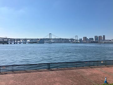 豊洲ぐるり公園からみたレインボーブリッジ。実物と写真とどこが違うか?が問題になっていました。