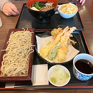 「天ぷらせいろ」と「たぬきうどん」。さやの湯処は、料理にも力を入れているようです。