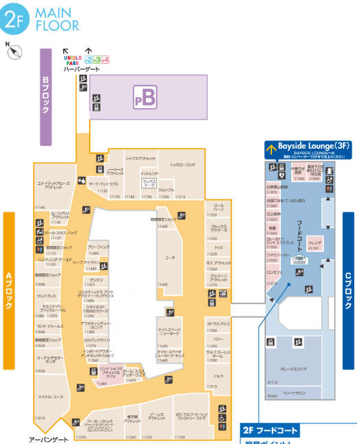 三井アウトレットパーク横浜ベイサイドの2Fレイアウト図(ここから引用)