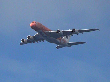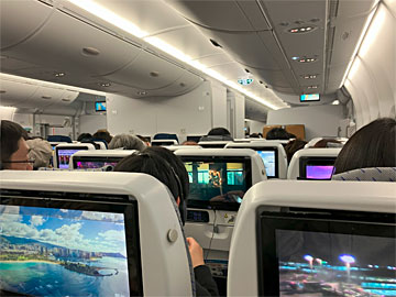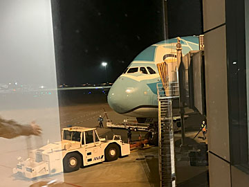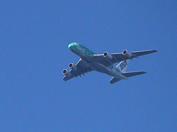 この日ホヌは1機しか飛んでいないらしく(1日2機飛んでいる日もある)、少なくとも1階は(このA380は総2階建て)満員のようでした。