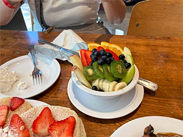 近くのエッグスンシングスにランチを食べに歩いて行きます。