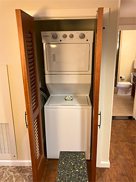 壁に収納されている洗濯機と乾燥機。右奥はトイレ。