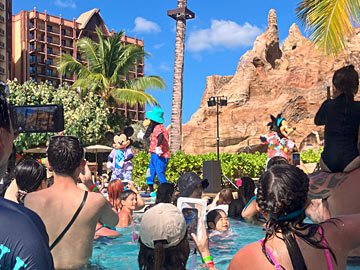 流れないプールのサイドでキャラクターがミニショーをやっていました。