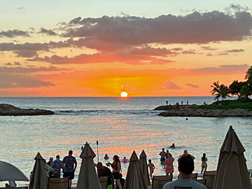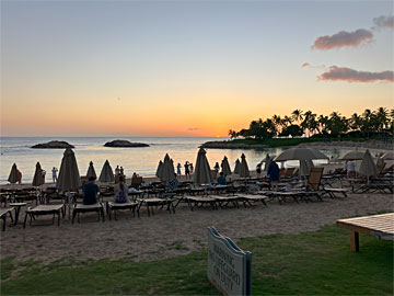 予約時間が日没後(19時)だったので、海岸線で一度アウラニの海岸に戻り、日没(18:39)を見ました。