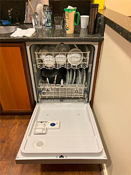 ビルトインの食洗機、庫内が広くて使いやすい。ベッドメイキングの人も、備え付けの食器をそれぞれの部屋で洗っているらしい。
