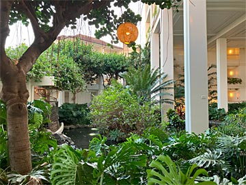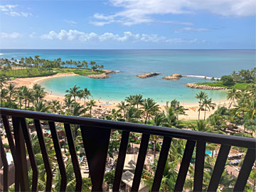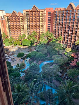 窓の外。今回の部屋は「アイランドガーデンビュー」(下から2番目のグレード)。リクエストして高層階(14F)にしてもらいました。