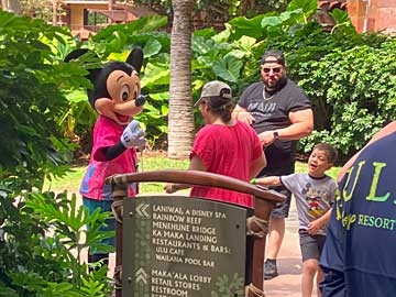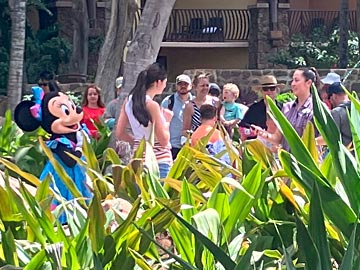 キャラクターグリーティングに並びます。ミッキーマウス。