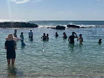 アウラニに戻ってきて、徒歩で近くの公共ビーチに亀を見に行きます。