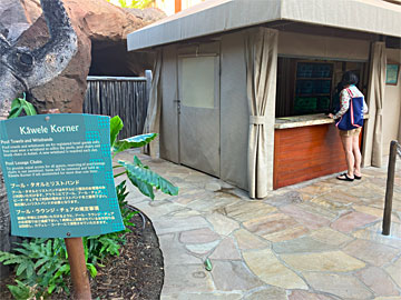 プールサイドに小屋があり、ここでリストバンドを付けてもらったり(ルームキーをカードリーダーに押し付ける必要あり)、リストバンドを見せて、バスタオルをもらったりします。