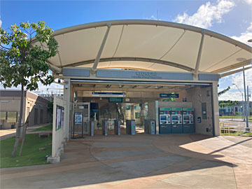 ケオネアエ駅(ハワイ大学西オアフキャンパス)に車で来ました。この駅はパーク&ライドが可能な、駐車場付きの駅です。