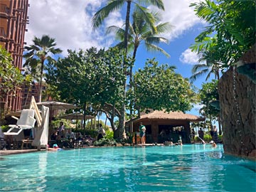 アウラニ(ハワイ オアフ島)に行ってきました。アウラニディズニーリゾートは、2011年8月オープン。ハワイ・オアフ島西部のコオリナ地区に位置し、ディズニー初のテーマパークを併設しないホテルです。遊園地はありませんが、中庭がちょっとしたウォーターパーク風になっていて、キャラクターも登場します。