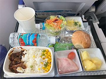 機内食は「牛肉のソテー ブラックペッパーソース」。美味でした。