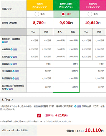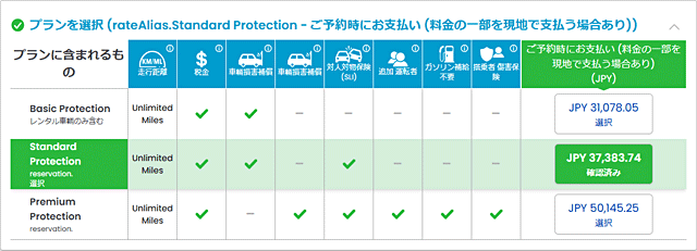 これは違う日なので、値段が違いますが、こんなイメージ。車両損害補償が2種類ある。