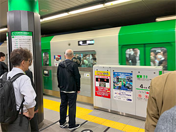 東入場ゲート。9:40くらいに着きましたが、我々のように9時から入れる券と、10時から入れる券があり、入場ゲートの右半分を9時からの人、左半分を10時から入る人、と分けて待たせていました。X線による手荷物検査があり、入場に時間がかかります。