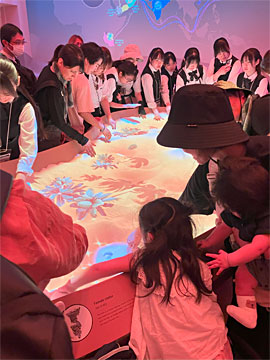 38億年間、生物が協力しながら一度も途切れることなくバトンタッチされ続けてきた『動的平衡』を、光の粒子の一大ショーで表現しています。