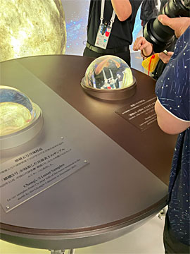 月のおもて側(左)と裏側(右)から取ってきた砂を展示していました