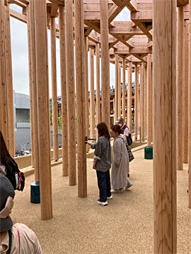 大屋根リングの下を歩きます。すごい高さ(最大20m)の木造建築です。